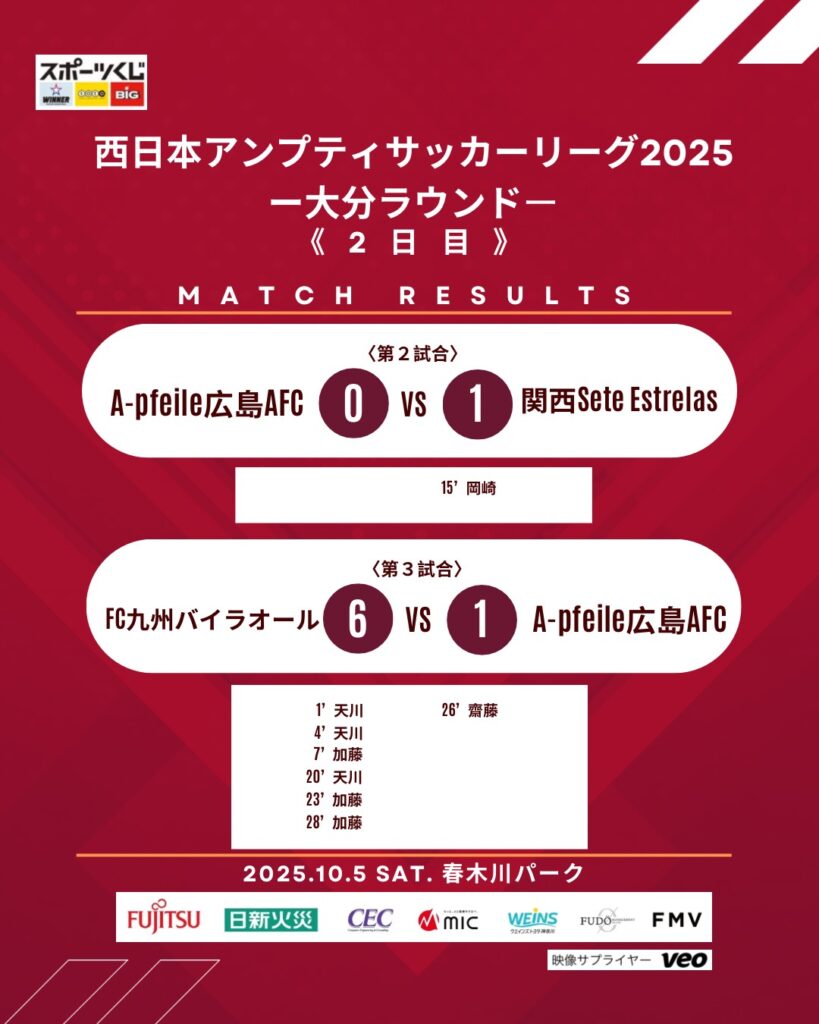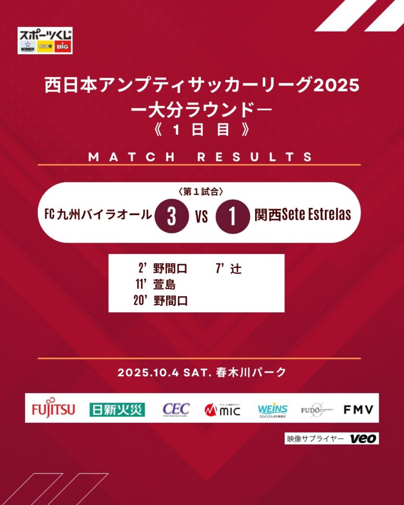 【試合結果】西日本アンプティサッカーリーグ2025 -大分ラウンド-