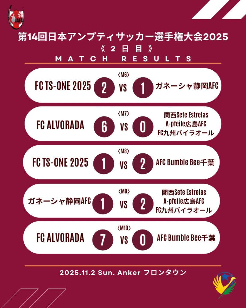 【大会結果】第14回日本アンプティサッカー選手権大会 2025